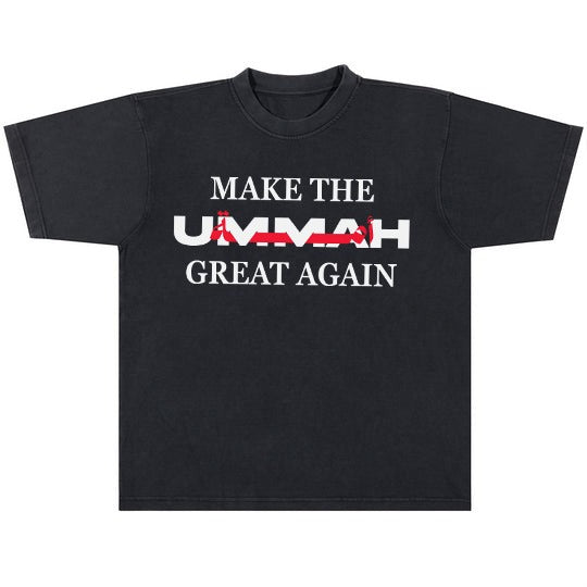 Black "Make The Ummah Great Again" Premium T-Shirt. This premium tee speaks boldly in a time of silence. “Make The Ummah Great Again” is more than a phrase—it's a rallying cry against injustice, occupation, and silence. With a nod to the War in Gaza, the Free Palestine cause, and the ongoing call to End Genocide, this shirt represents a collective refusal to look away.