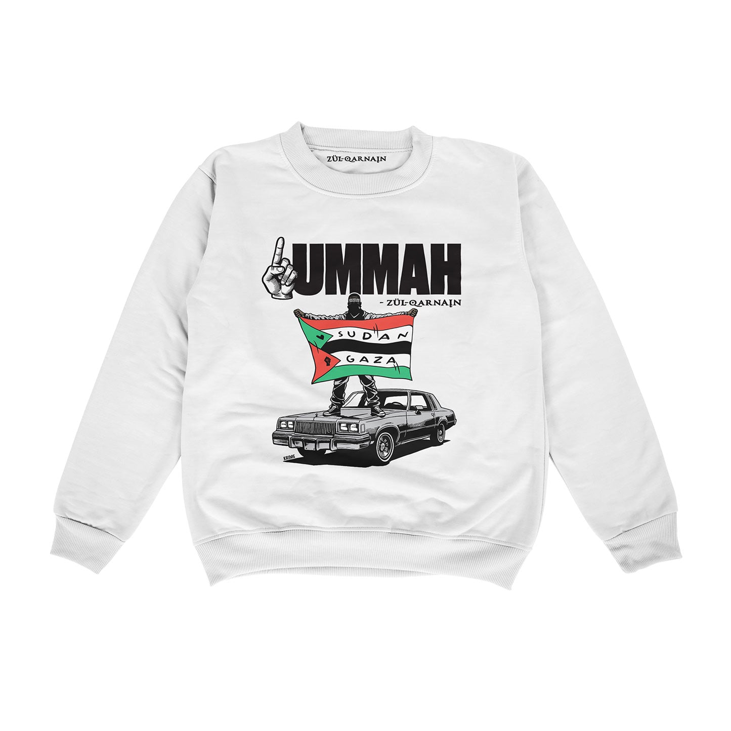 White | One Ummah {No Face Kalimah Bandana} Premium Crewneck Pullover